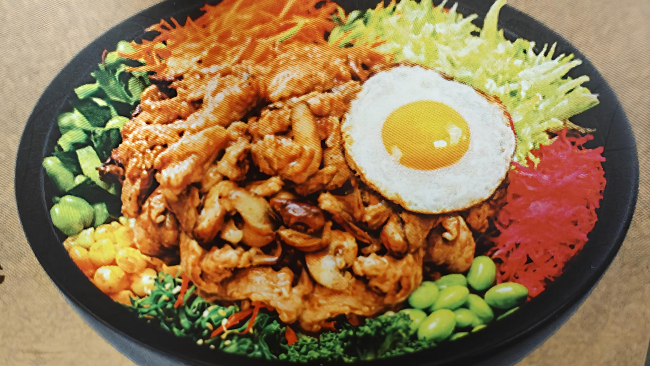 vejce , brokolice ,kukuřice, mrkev, červený salát, sójové boby,Pečená cibule, sezam
